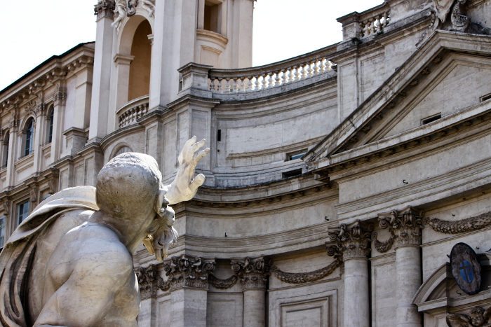 Another figure is depicted with an outstretched arm, as if ready to support the church when it falls. Needless to say, this realization was the cause of certain ridicule of Borromini. He, for his part, wishing for payback, looked for what flaws the Fountain of the Four Rivers might have. And he found one: his calculations indicated that a couple of minutes after the fountain was inaugurated, it would run out of water.